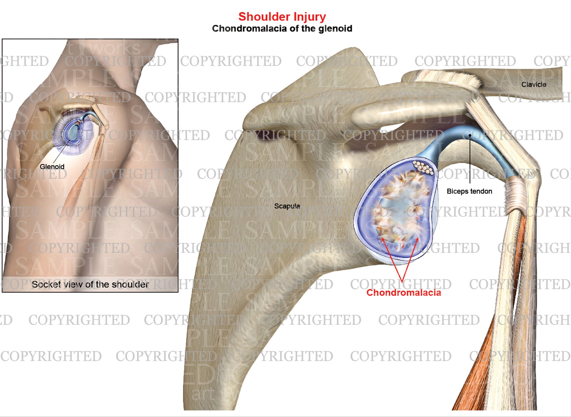 Shoulder injury condition depicts chondromalacia of the glenoid.