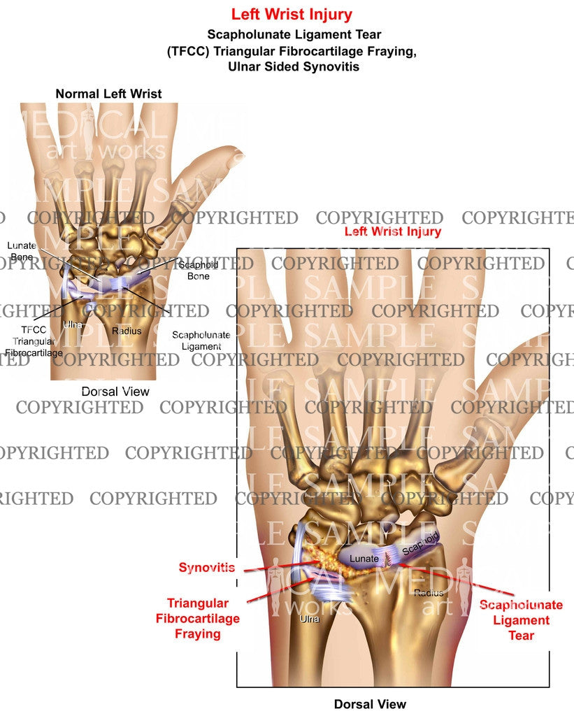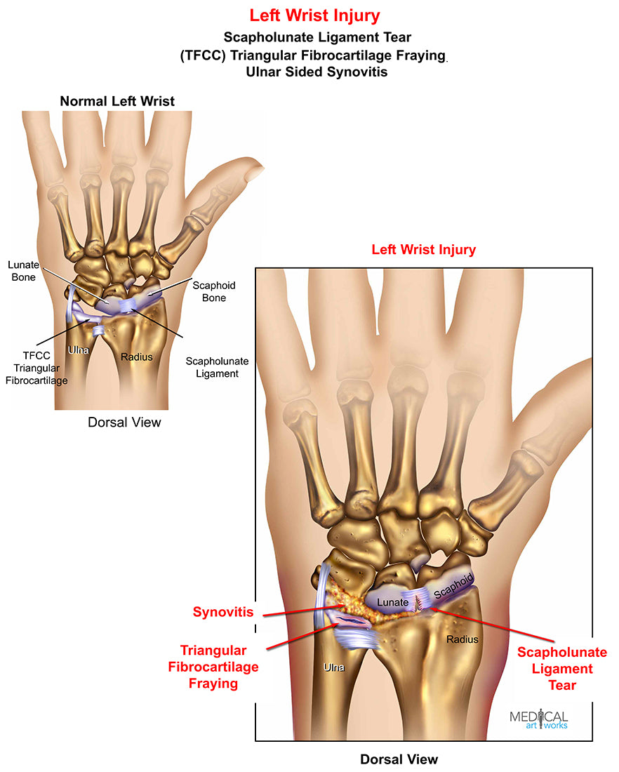 (TFCC) Triangular Fibrocartilage fraying. Ulnar sided synovitis.
