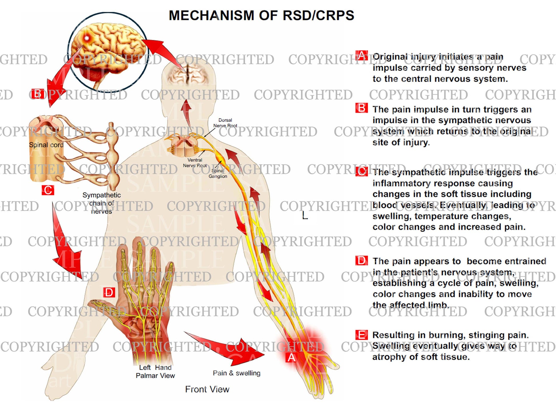 MECHANISM OF RSD: Reflex Sympathetic Dystrophy (Complex Regional Pain) Left hand