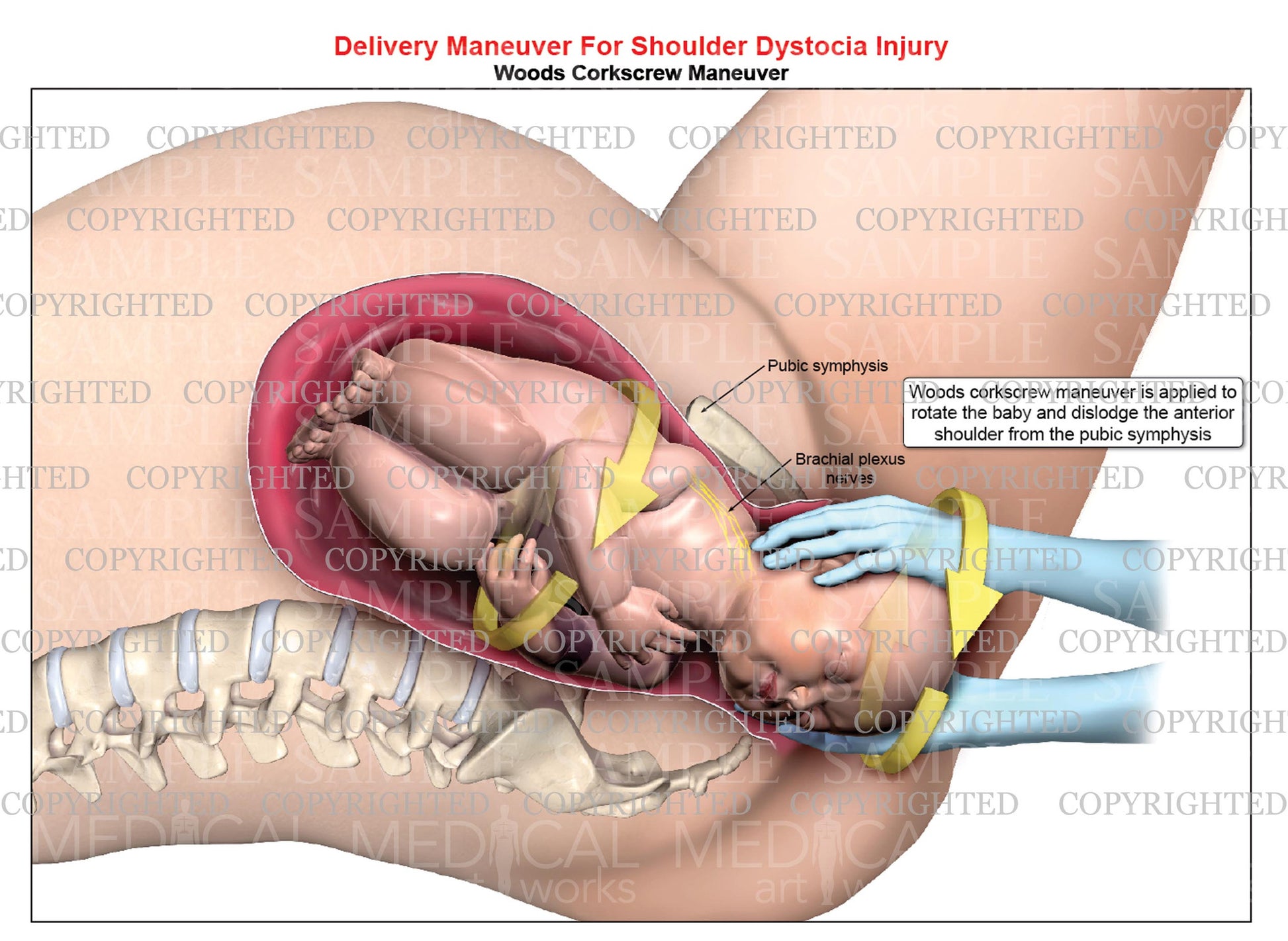 Woods Corkscrew maneuver of right anterior shoulder dystocia - Delivery maneuver